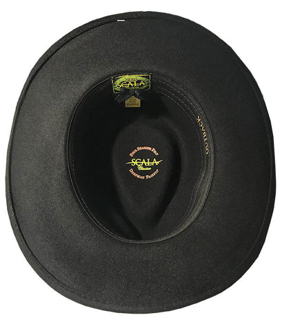 This is a black wool felt Dorfman Pacific hat that is what they call crushable. It maintains its shape even if sat upon. It has a 3" brim, comes in sizes small to 3X, and includes an BPOE hat band (a $10 value).... Price includes adding your lodges info to the hat band